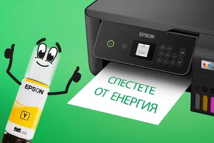 Въз основа на изчисленията на Epson принтерите за дома и домашните офиси EcoTank използват по-малко енергия в сравнение със средното енергоспестяване на 5-те най-продавани цветни многофункционални лазерни принтера А4, печатащи 1 – 20 стр./мин във Европа (IDC, Quarterly Hardcopy Peripherals Tracker, доставки за 2022 г., публикувано през четвъртото тримесечие на 2023 г.). Стойностите на разхода на енергия са дадени, както са публикувани в официалните спецификации на производителите.